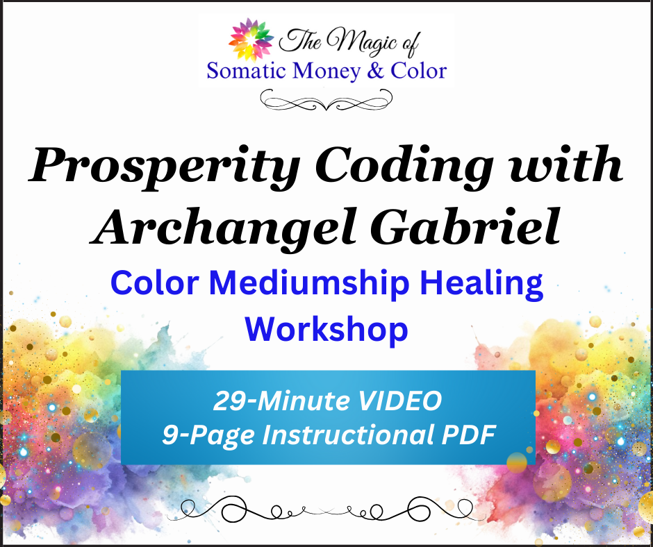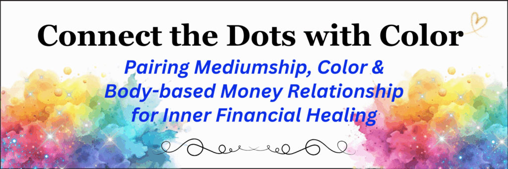 WHAT’S YOUR COLOR OF MONEY? Story/Workshop: Not long after I released Painting Outside the Lines, I experienced my own money-color-healing event. How does that work? Remember, an aspect of money is purely vibrational — energetic. And those financial energies vibrate in the body. I experienced a colorful financial vibrational healing through my body that allowed me to piece together even more of the money-color-healing puzzle using my years of Somatic Money experience and knowledge. That personal story/workshop video is below as What’s Your Color of Money?