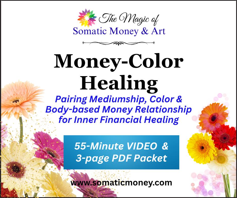 As my personal art revolution unfolded, it moved in ways I did not anticipate, including psychic mediumship events into my body-based money relationship work. The programs you see here are novel approaches to inner-personal financial healing. We’ve known for awhile that color therapy and art therapy aids in the healing process . . . so why not with inner-personal financial healing too? You see, money is rooted in our physiology (physical), our auric cellular coding (energetic) and our emotional intelligence (EQ). So why wouldn’t color healing therapy through mediumship with high level light beings make a difference to? I believe it’s already happening and we don’t know it. This is the conscious approach. Check it out!