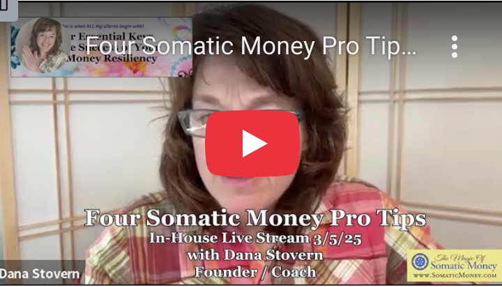 1. BEGIN: Four Essential Keys To the Success of Your EQ-Money Resiliency. If this looks familiar it is. This is the FREE opt-in at the front of my website that gives you the bare-bones functional basics of Somatic Money. Every concept, tool and practice in Somatic Money tracks back to these four foundational elements that are critical to the resiliency of your EQ-Money relationship! 8-page PDF with a 60-minute video from a live Zoom. (Reboot the home page for the FREE opt-in).